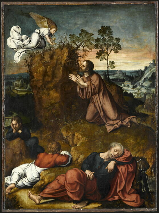 Jésus prie dans le jardin de Gethsémané – Matthieu 26 37 Il prit avec lui Pierre et les deux fils de Zébédée, et il commença à éprouver de la tristesse et des angoisses. 38 Jésus leur dit alors : Mon âme est triste jusqu’à la mort ; restez ici, et veillez avec moi.