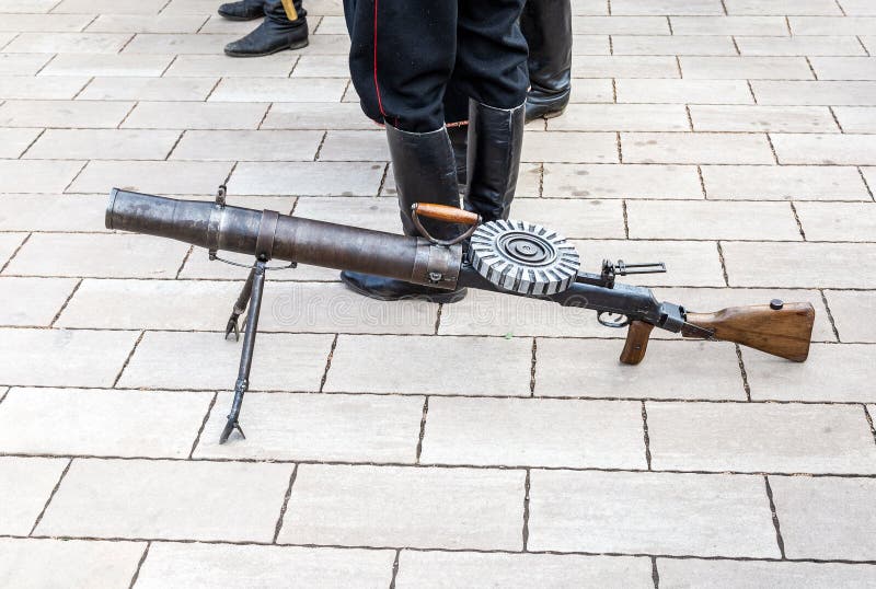 Pour les mitrailleuses lourdes, l’utilisation de la sangle à munitions est une autre particularité par rapport aux fusils (automatiques) : (Fusils automatique 5 coups). Automatique automatica automatisch mitrailleuse gewehr aks 74u mitragliatrice couteau machinegeweer fusil geweer automatisches. Une sangle permet une cadence plus élevée par rapport à une alimentation en munitions conventionnelle avec un chargeur.