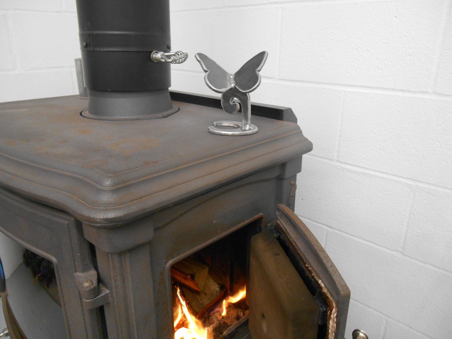 Matériel pour l’allumage : blocs et petits bois d’allumage au lieu de papier (Papillon-decoration ornement de poele a bois poele en metal).