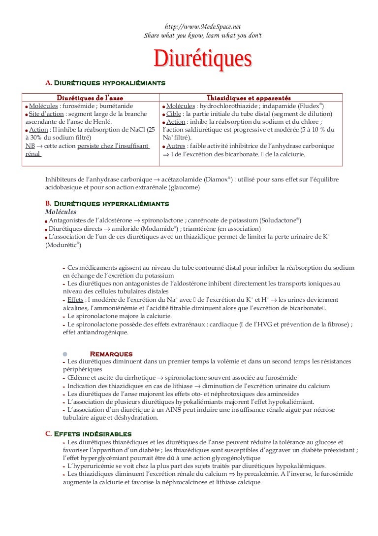 Quels médicaments sont des diurétiques ?