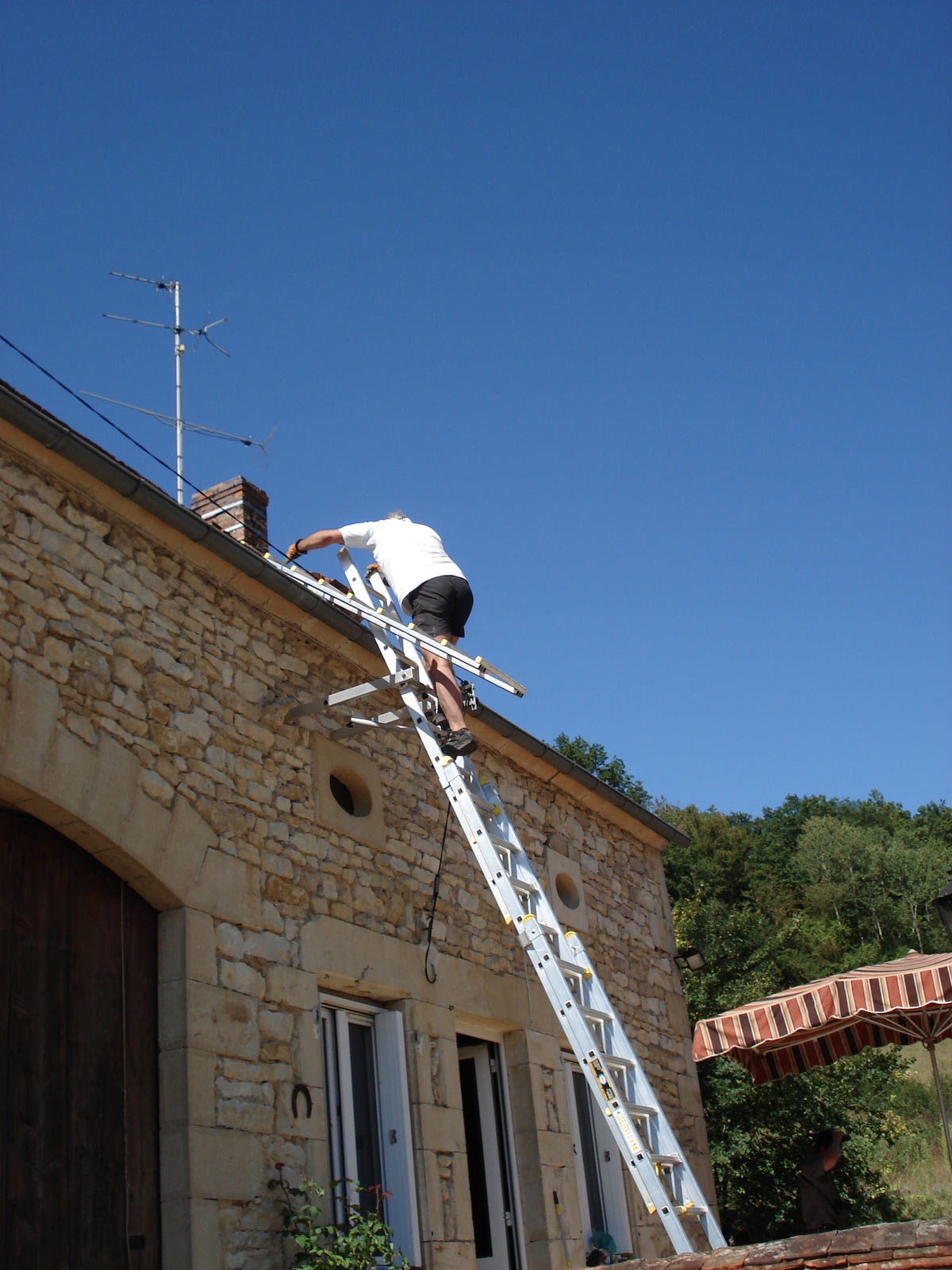 Comment se déplacer sur le toit ? Fais le premier pas sur le toit de manière à ce que tes pieds soient parallèles au faîte du toit et sur la partie inférieure des tuiles. Echelle de toit brico depot beauvais. Ne saute pas et ne fais pas de mouvements rapides entre les tuiles (Echelle plate couvreur brico depot). Si tu tombes trop fort, elles risquent d’être endommagées.