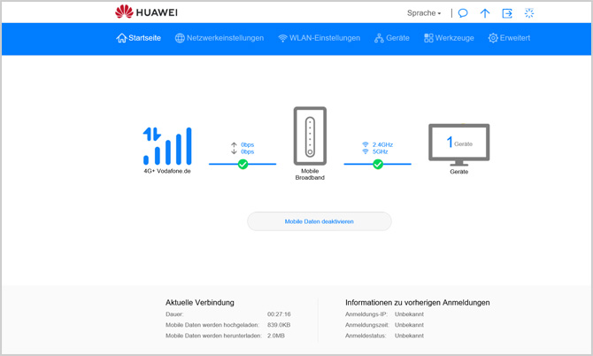 Le GigaCube est connecté à la prise électrique la plus proche ; le smartphone, la tablette et autres se connectent au réseau WLAN du routeur et c’est parti (gigacube vodafone). Selon l’état d’extension du réseau mobile Vodafone sur place, il est possible d’atteindre des vitesses allant jusqu’à 500 Mbps.