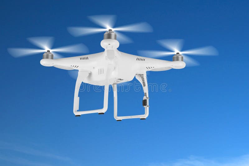 Le drone de nos jours est un véhicule aérien sans pilote ou UAV, qui peut soit être actionné par l’homme, soit fonctionner de manière autonome, dans un mode particulier (Bourdon, Quadrocopter Sur Le Blanc Image stock). En termes simples, un drone est un peu comme un robot volant.