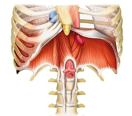 Le diaphragme remplit de nombreuses fonctions. La plus connue est (1) l’exécution du mouvement respiratoire : (Diaphragme thoracique). Sans la capacité de contraction du diaphragme, nous suffoquerions purement et simplement : (Canal thoracique diaphragme). Cette contraction crée une dépression et l’air est aspiré dans les poumons.