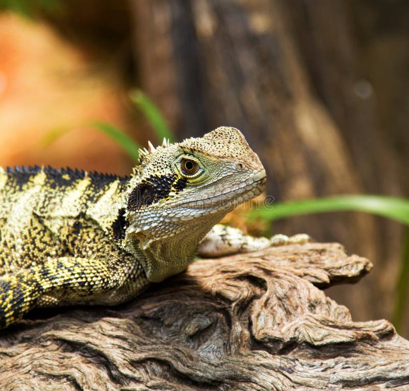 Plus le lézard est grand et exotique, plus les coûts et les efforts sont élevés (Dragon Barbu (lezard D’agame) Image stock). Certains lézards s’apprivoisent et s’attachent, se laissent caresser et transporter et apprécient la chaleur du corps humain.