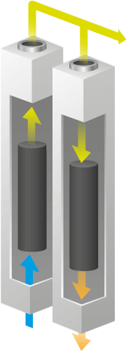 L’acide nitrique est produit selon le procédé OSTWALD en trois étapes partielles (Produire de l’azote). Tout d’abord, l’ammoniac est oxydé avec de l’air pour former du monoxyde d’azote, qui réagit ensuite avec l’air pour former du dioxyde d’azote : Azote procede. Pour finir, le dioxyde d’azote est transformé en acide nitrique avec de l’eau.